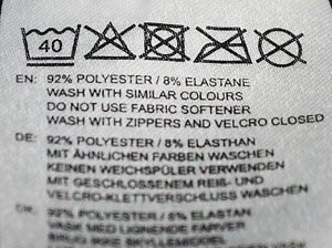 Машинная стирка в холодной воде. Стирать стиральным порошком с похожими по цвету вещами. Не использовать кондиционер для белья. Сушить в сушильной машине при низкой температуре. Не гладить. Не отбеливать. Не использовать химчистку. Застегнуть все застёжки.