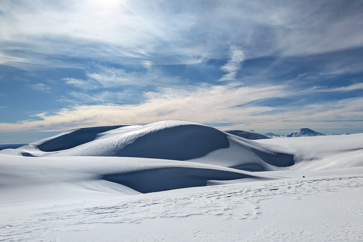 Ближе к местной весне — с сентября — на юге начинается период ветров. Из-за сильных порывов курорты периодически закрывают подъёмники. При этом солнце ещё активное. Если вне зон катания на вершинах вулканов жёсткие заструги и лёд местами, то на трассах — мягкий весенний снег, как в майских Хибинах.