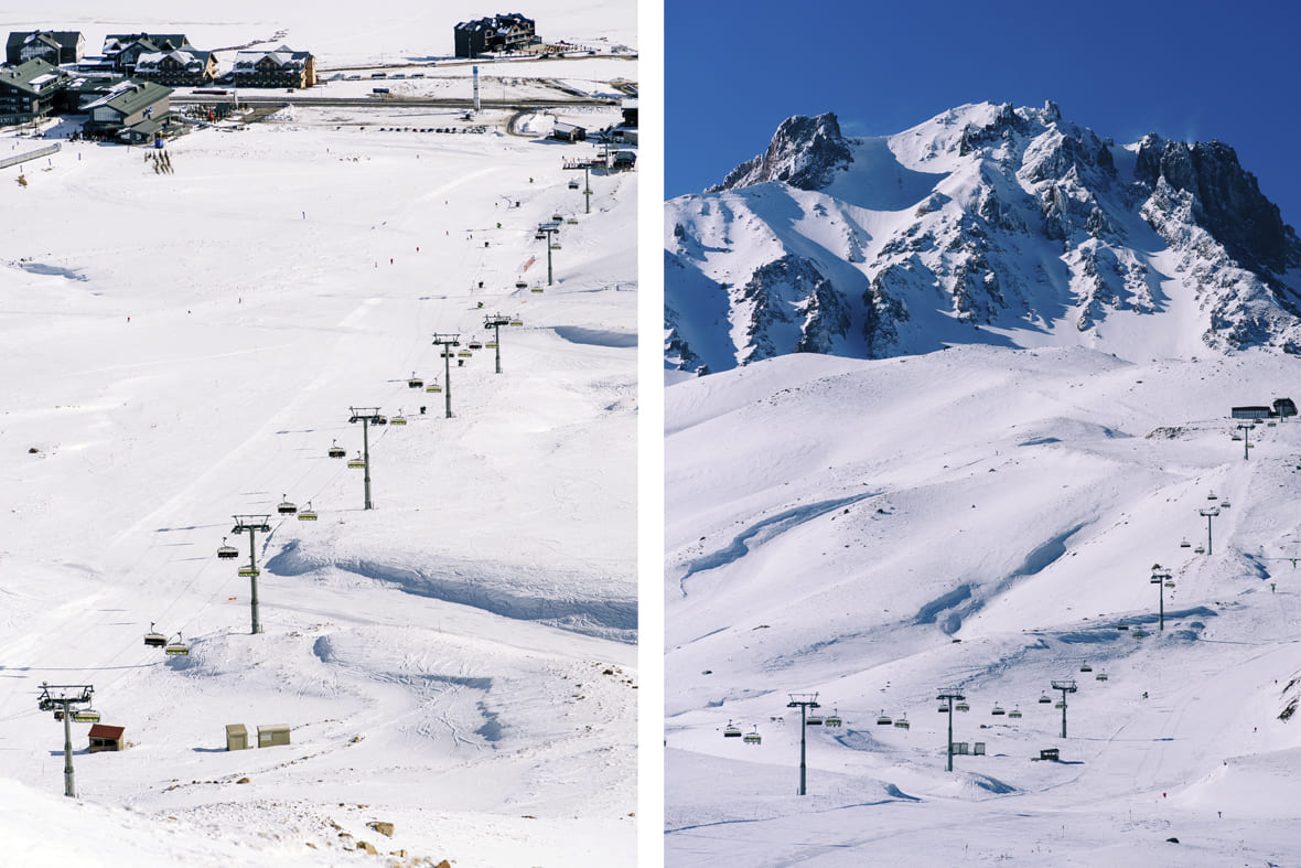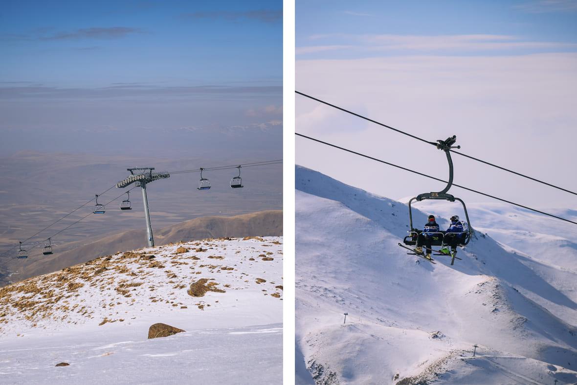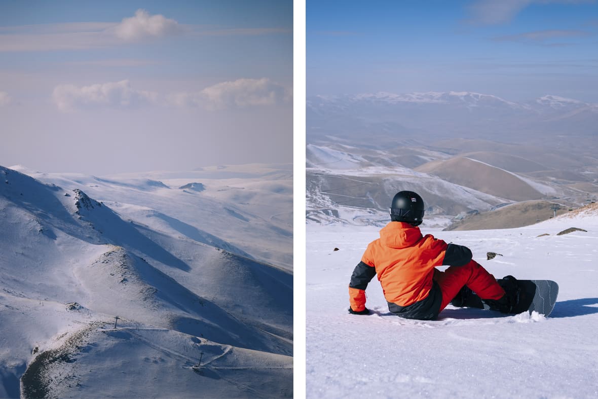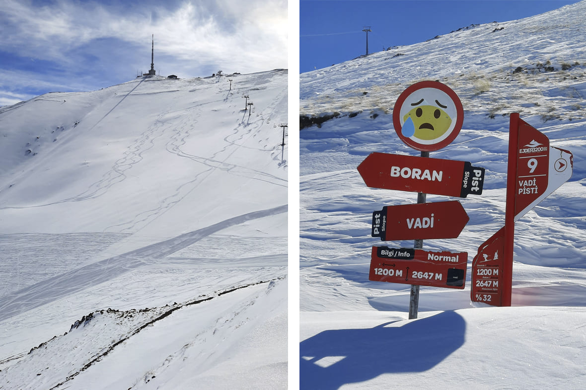 Где кататься. На курорте три зоны катания и три очереди подъёмников. Трассы в нижней зоне, где в основном «синие» спуски для начинающих райдеров, часто закрыты из-за дефицита снега. Средняя зона обычно открыта весь сезон. Здесь есть учебный склон с беби-лифтом, место для катания на санках — турки часто приезжают сюда только за этим развлечением — и «красные» широкие трассы. Третья очередь — подъём на Давраз, правда, не на саму вершину, а на высоту 2340 метров. Сюда стоит ехать только опытным лыжникам и сноубордистам. С верхней станции вниз идут две «чёрных» трассы. Их почти не ратрачат, если снега много, получается фрирайд с подъёмника.