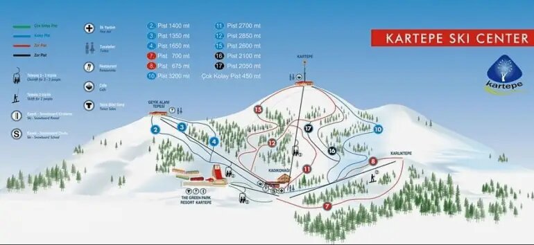 Где кататься. На курорте есть гондольные, кресельные и бугельные подъёмники, новые современные и старые, всего их 24. Курорт не оборудован снежными пушками и ратраками из-за экологических ограничений. Трассы разнообразные, но есть узкие участки. Встречается лёд, особенно когда выпадает мало снега. Большинство трасс проложены по еловому лесу. Половина из них «зелёные», также есть «синие», «красные» и одна «чёрная». Катание подойдет больше для новичков, семей и расслабленных райдеров, а также тех кто живет в Стамбуле и хочет выбраться покататься на выходные. Опытным райдерам может не хватить рельефа и разнообразия.
