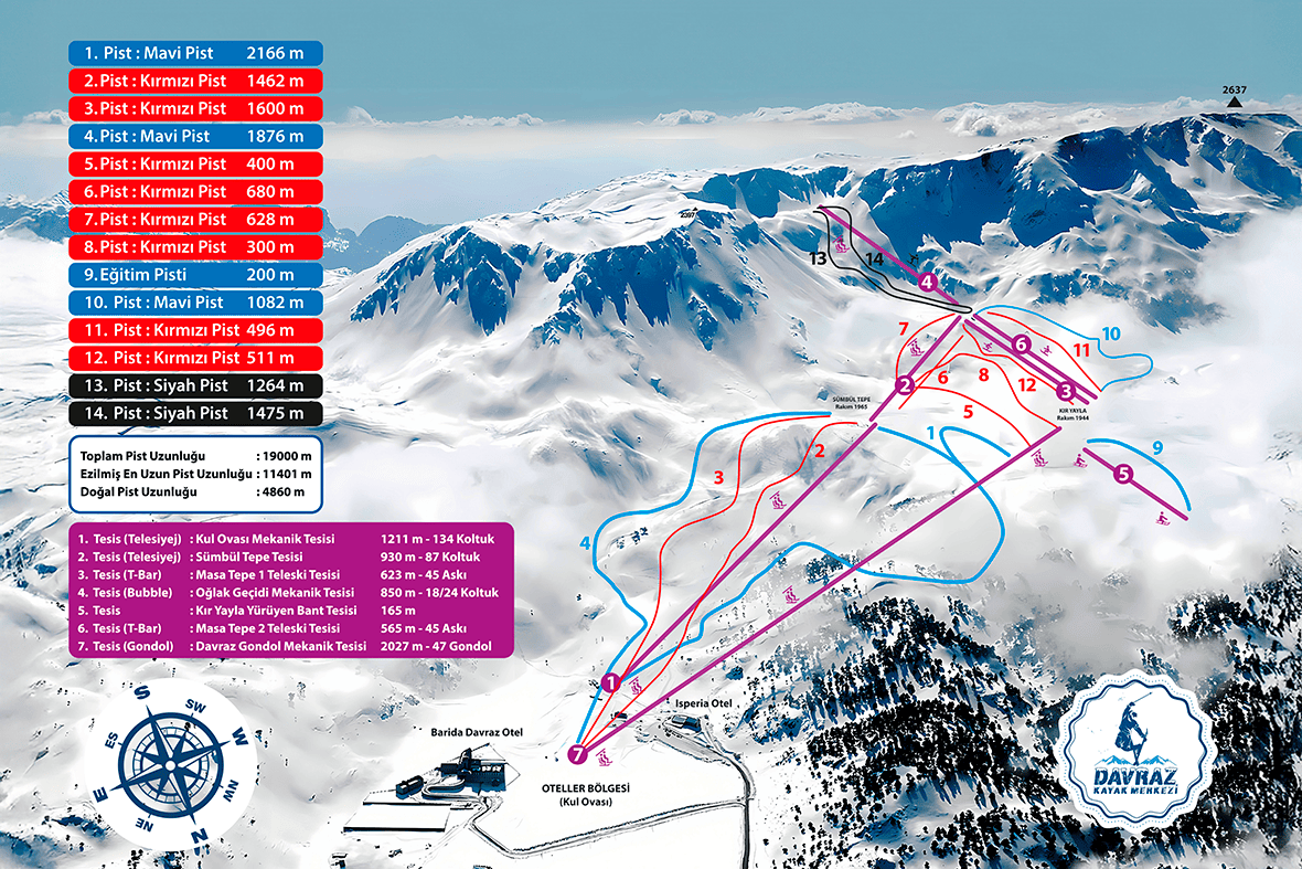 Схема курорта Давраз. Источник: davrazkayakmerkezi.org