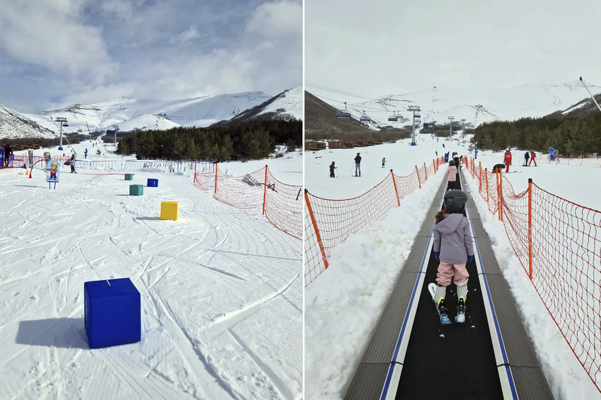 - Покупайте проход в учебную зону с инструктором, если планируете сначала изучить базовые элементы катания. В рамках лыжной школы первый проход на учебный склон обойдётся в 5000 драмов (1300 рублей) с учётом карты с чипом, без инструктора — 6000 драмов (1550 рублей).