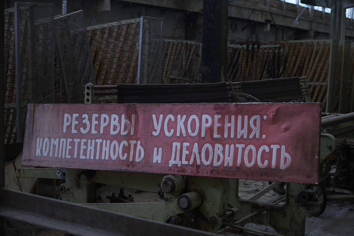 С момента, когда предприятия перестали функционировать, прошло более 30 лет, но некоторые цеха выглядят так, будто рабочие ушли в пятницу вечером домой и не вернулись. Документы, изделия, личные шкафчики с вырезками из журналов — всё это переносит в ту эпоху.