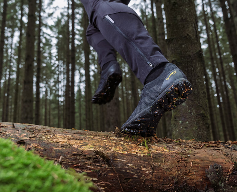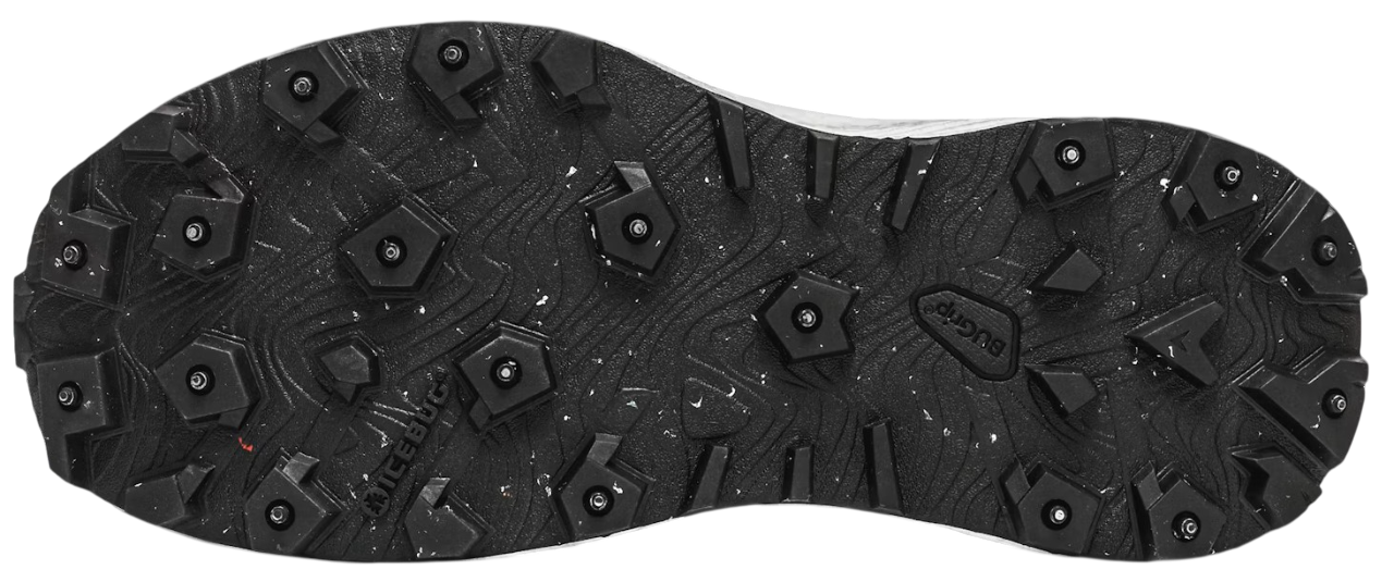 Наконец, подмётка с прочными и цепкими стальными шипами Bugrip обеспечивает наилучшее сцепление на льду и других скользких поверхностях, не создавая лишнего дискомфорта при движении по асфальту за счёт динамической, складной конструкции шипов.