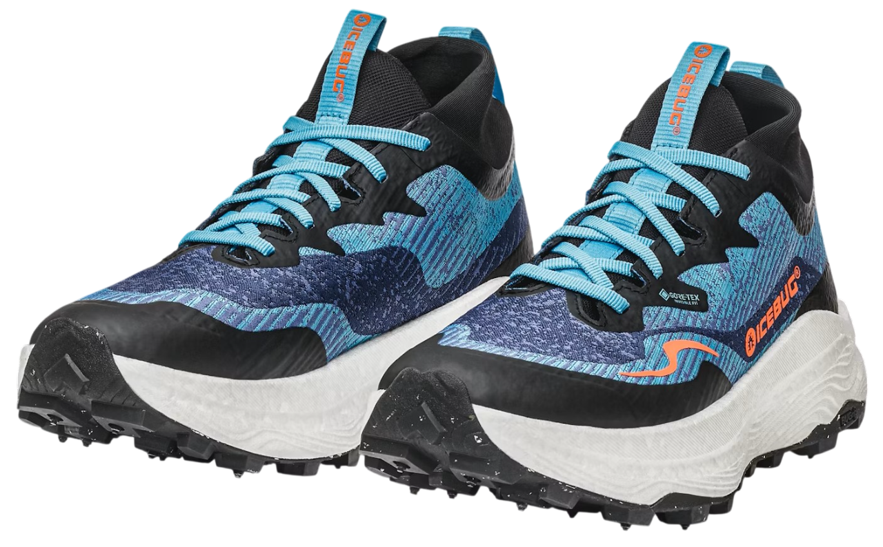 Отличная шипованная зимняя беговая обувь, подходящая как для медленных, так и для более энергичных тренировок в среднем и быстром темпе. Верх здесь выполнен из прочного и лёгкого жаккардового полиэстера. Визуально он напоминает верх летней беговой обуви, но щедро усилен полимерной ламинацией, чтобы выдерживать столкновения с ледяной коркой.