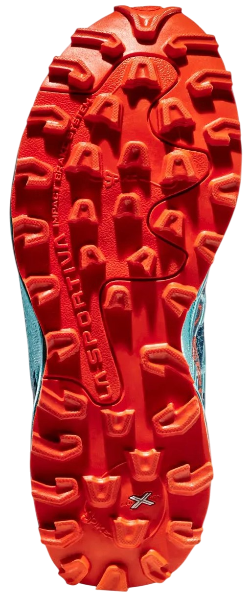 В компании не гонятся за последними трендами и делают упор на собственный опыт создания скальников и треккинговой обуви. В La Sportiva редко используют подошвы Vibram в своих кроссовках, предпочитая им собственные резиновые смеси семейства Frixion. Даже геометрия протектора перекочевала с подошв походных ботинок. Система Impact Brake System создавалась для них, но оказалась применима и в беге. Расположение шипов обеспечивает торможение и отталкивание без проскальзываний, а скошенная форма грунтозацепов увеличивает амортизацию.