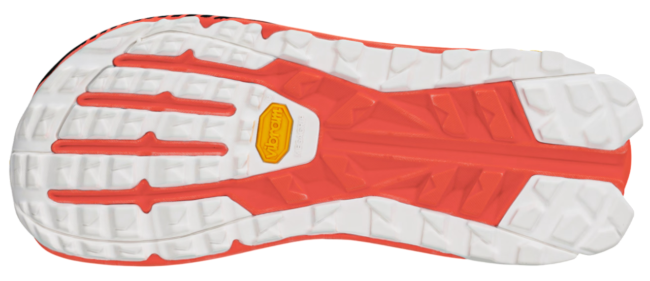 В целом же дизайн подошвы соответствует фирменному стилю Altra: вырезы в передней части стопы снижают её жёсткость и повторяют форму плюсневых костей. Вырез в области пятки также улучшает общую гибкость и отвод воды.