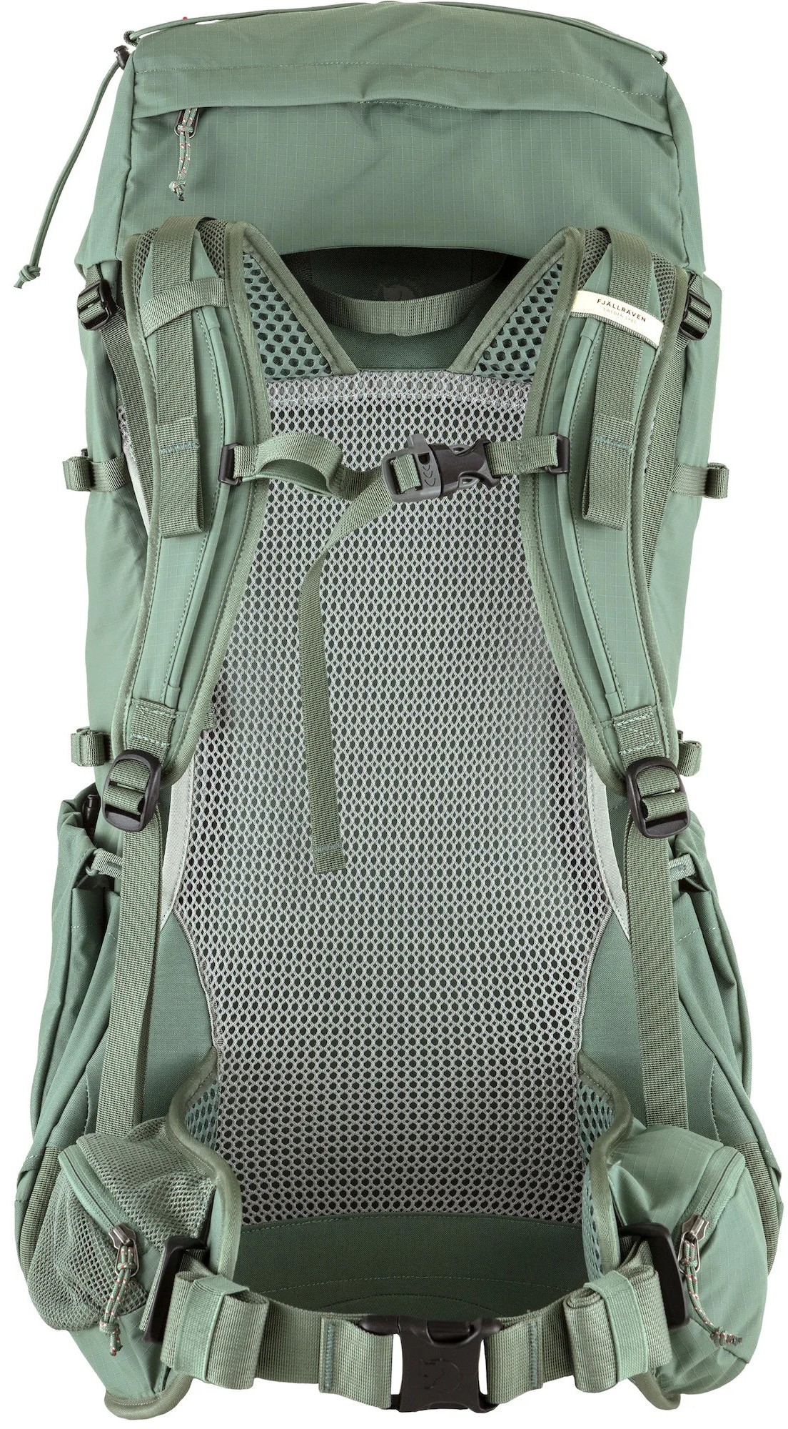 Внешне тоже может показаться, что Fjallraven Abisko — это современная классика туристических рюкзаков: плавающий клапан, вместительный карман на передней панели и два небольших кармана на поясе, обтекаемый дизайн и быстрый доступ в основное отделение через широкое «чемоданное» раскрытие. Но, как и в Kajka, интересных деталей у серии Abisko хватает: