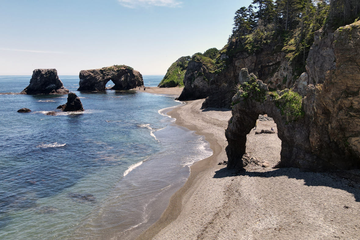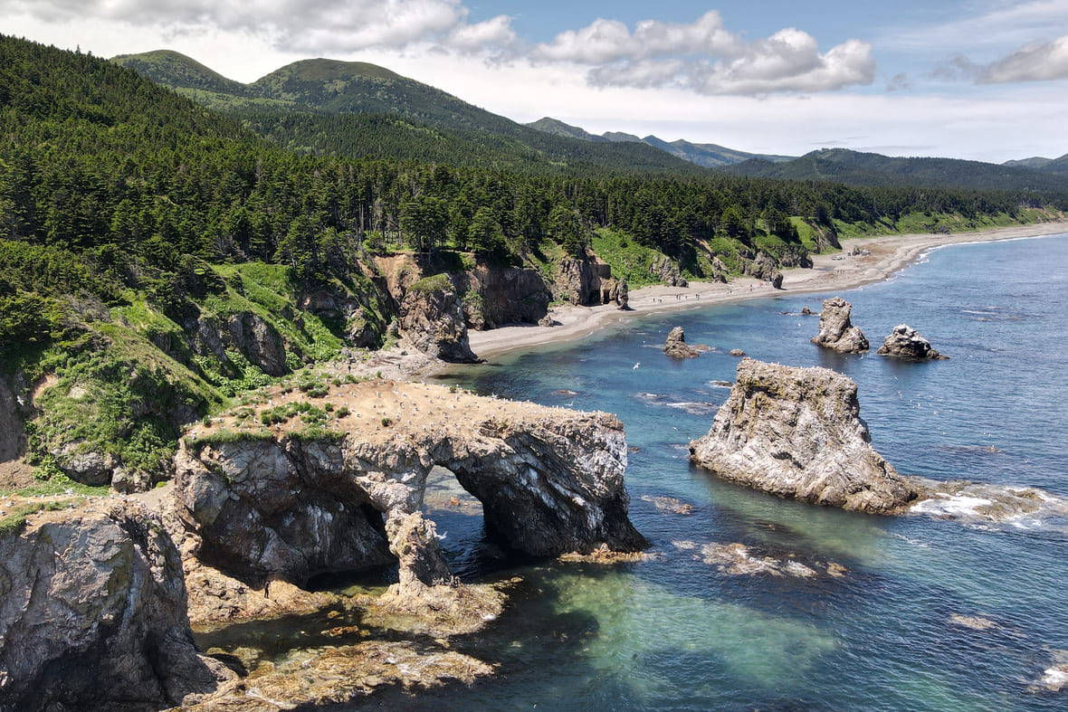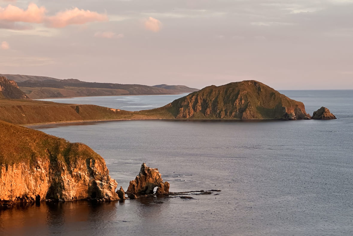 Остров Монерон — рай для дайверов и тех, кто ищет медитативный отдых с сумасшедшими пейзажами. На потухшем миллионы лет назад вулкане есть горы, водопады, пещеры, уникальные для Сахалина растения и животные.