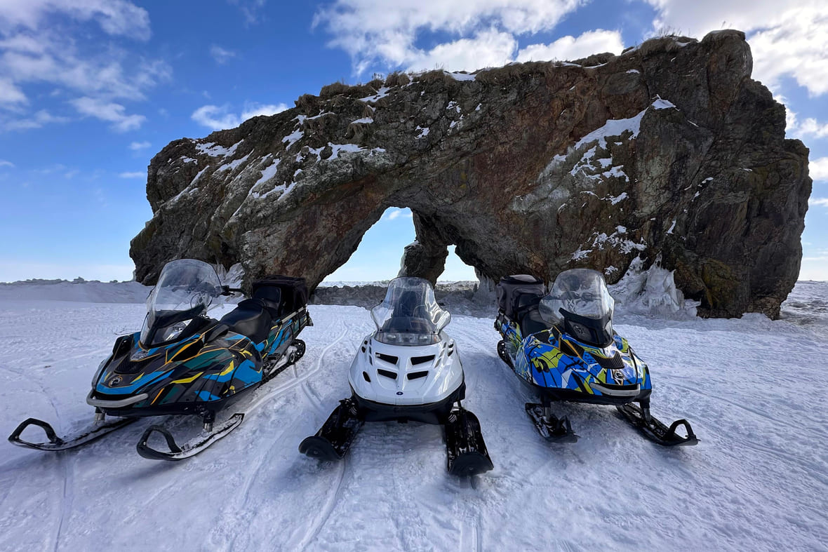 Зимой перемещаться по побережью можно только на снегоходах. Взять их в аренду практически невозможно, придётся искать турагентство.