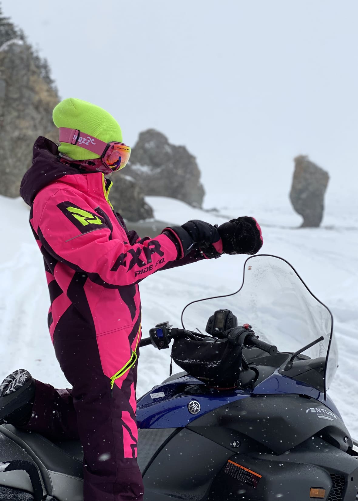 Для поездки на снегоходе нужно тепло одеваться и закрывать глаза от ветра маской. Фото: Ксения Титова