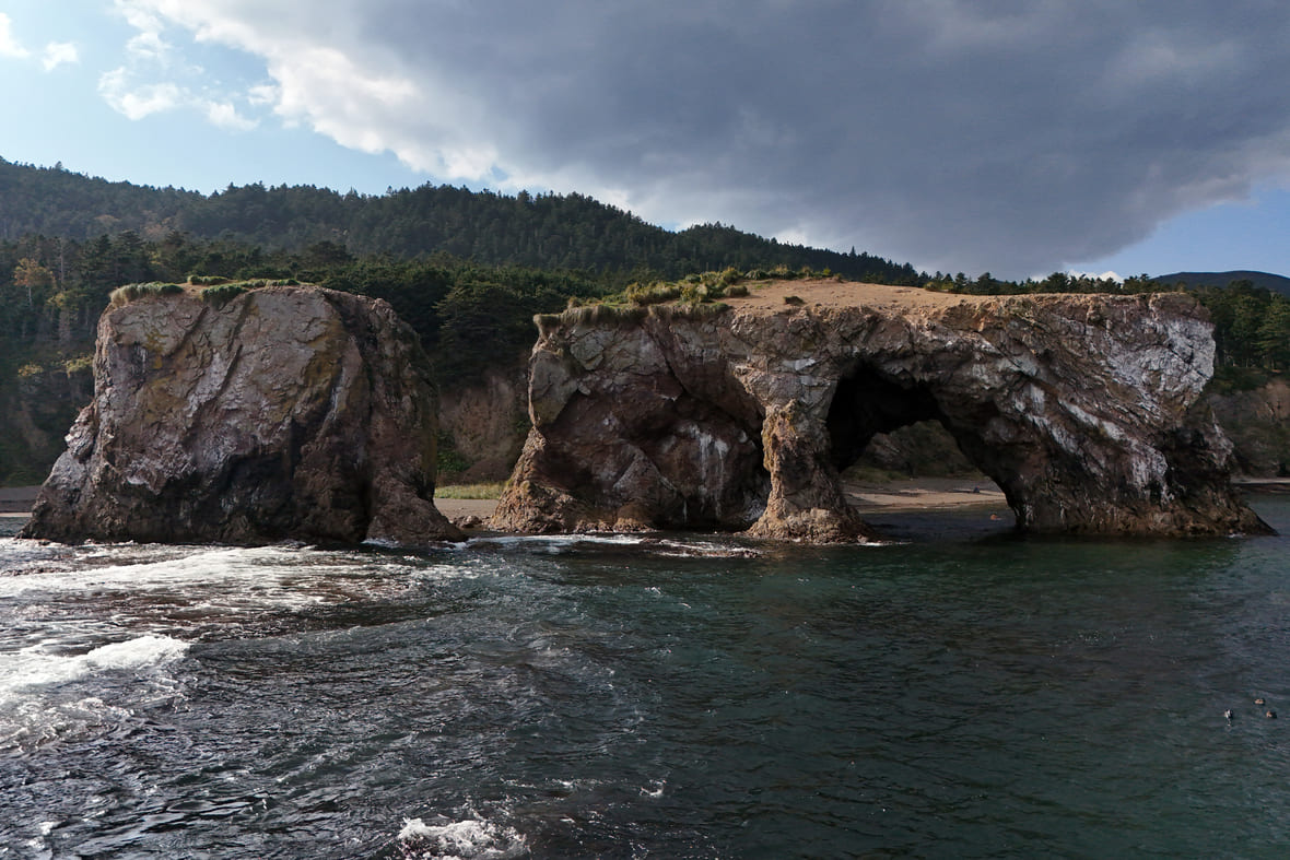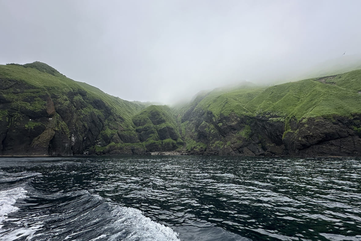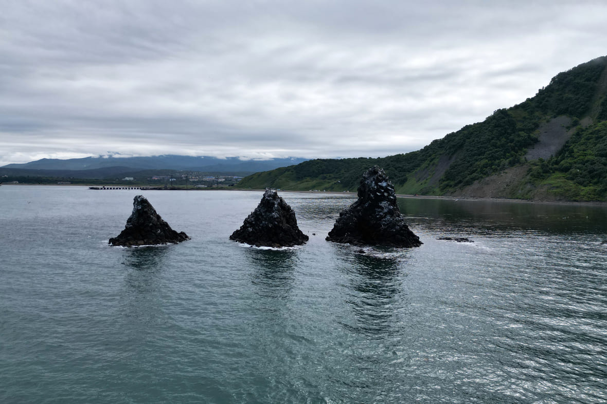 Как добраться: только с туроператором. Сначала на автомобиле до Невельска, оттуда — на катере до острова. Дорога по суше и морю займёт 3–4 часа. Выезд зависит от ветра, часто экскурсия срывается или заканчивается на середине пути в море, потому что поднимается волна.