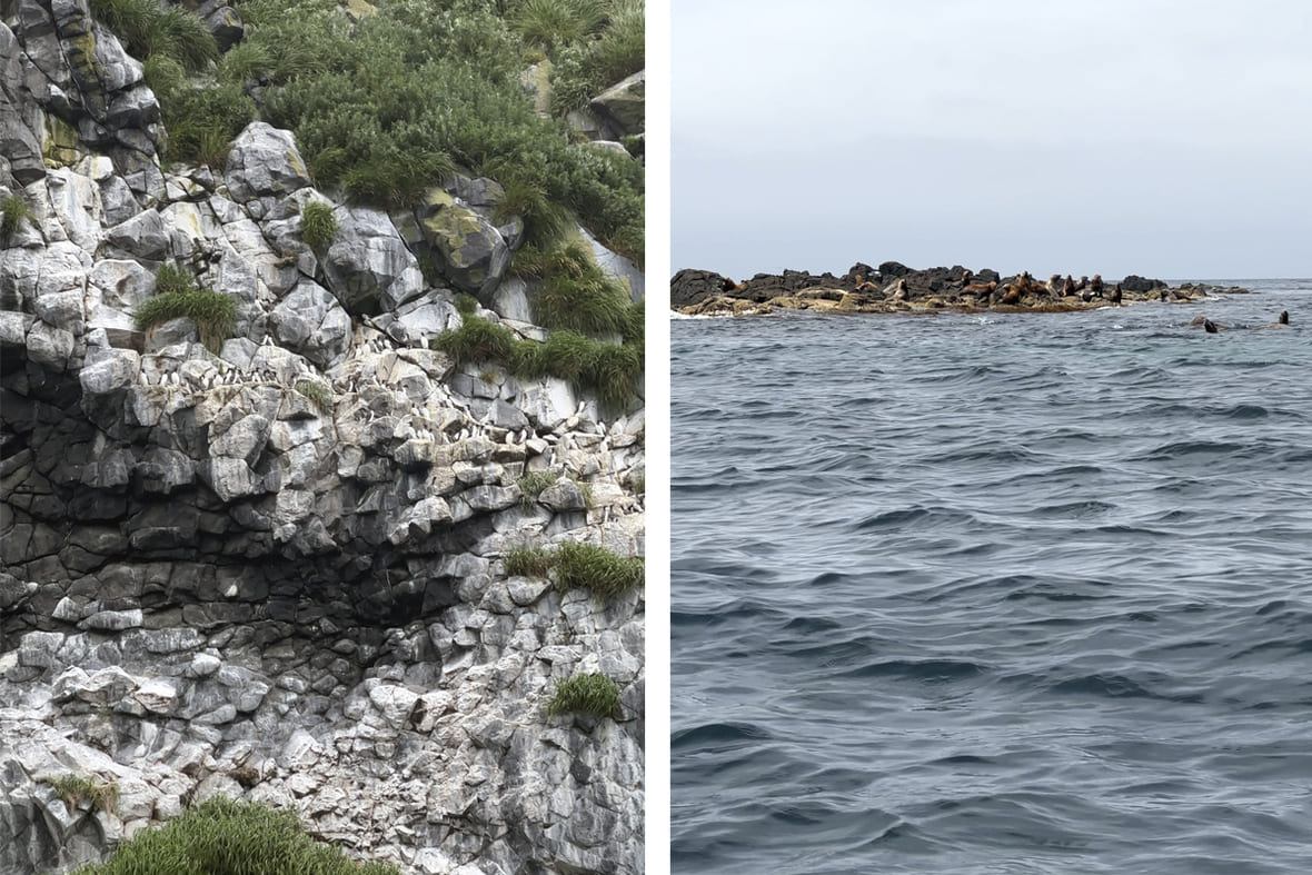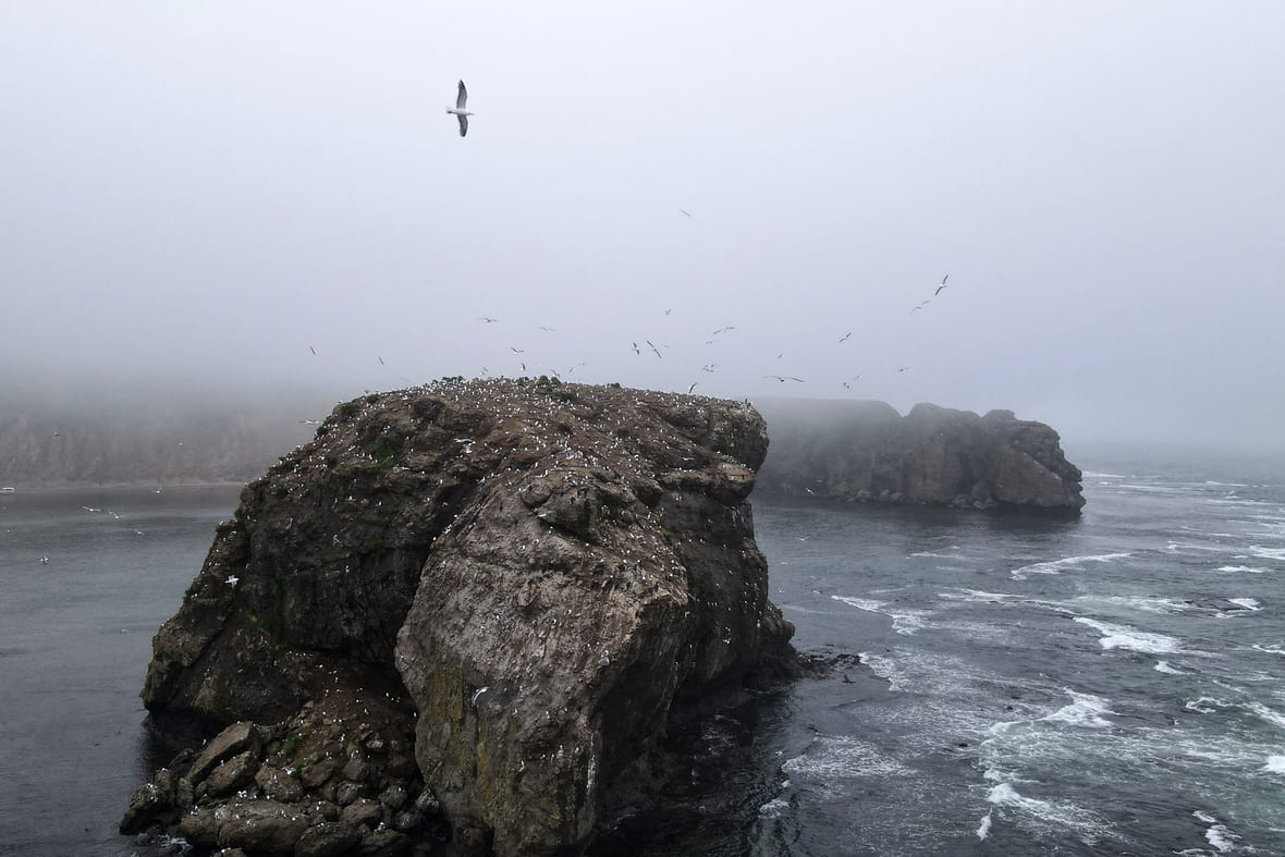 Кайры гнездятся на застывшей несколько миллионов лет назад лаве, а ленивые и милые сивучи вылазят погреться на солнце.