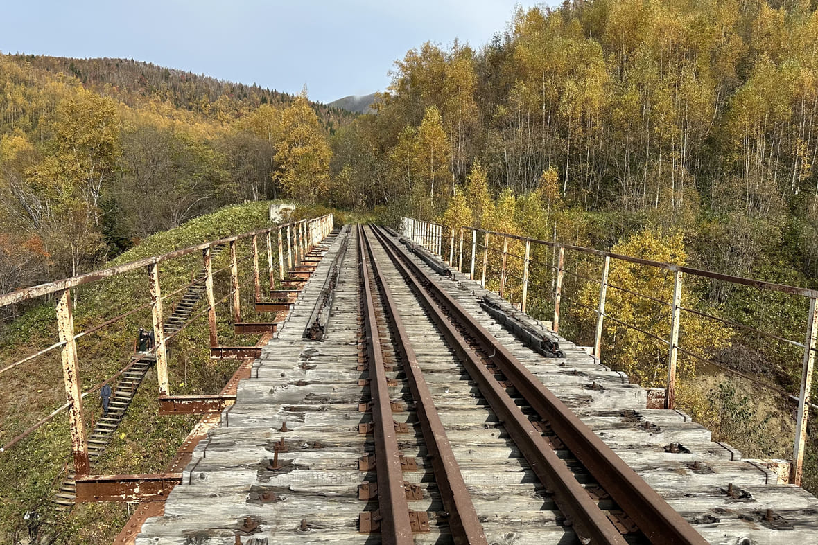 Если поезда в день вашего путешествия не ездят, можно пройти пешком по железной дороге с красивыми видами на сопки. Фото: Ольга Шамшуварова