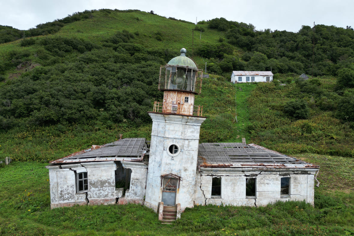 Маяк давно не работает, а хозяйственное здание и башня разрушаются. Фото: Ольга Шамшуварова