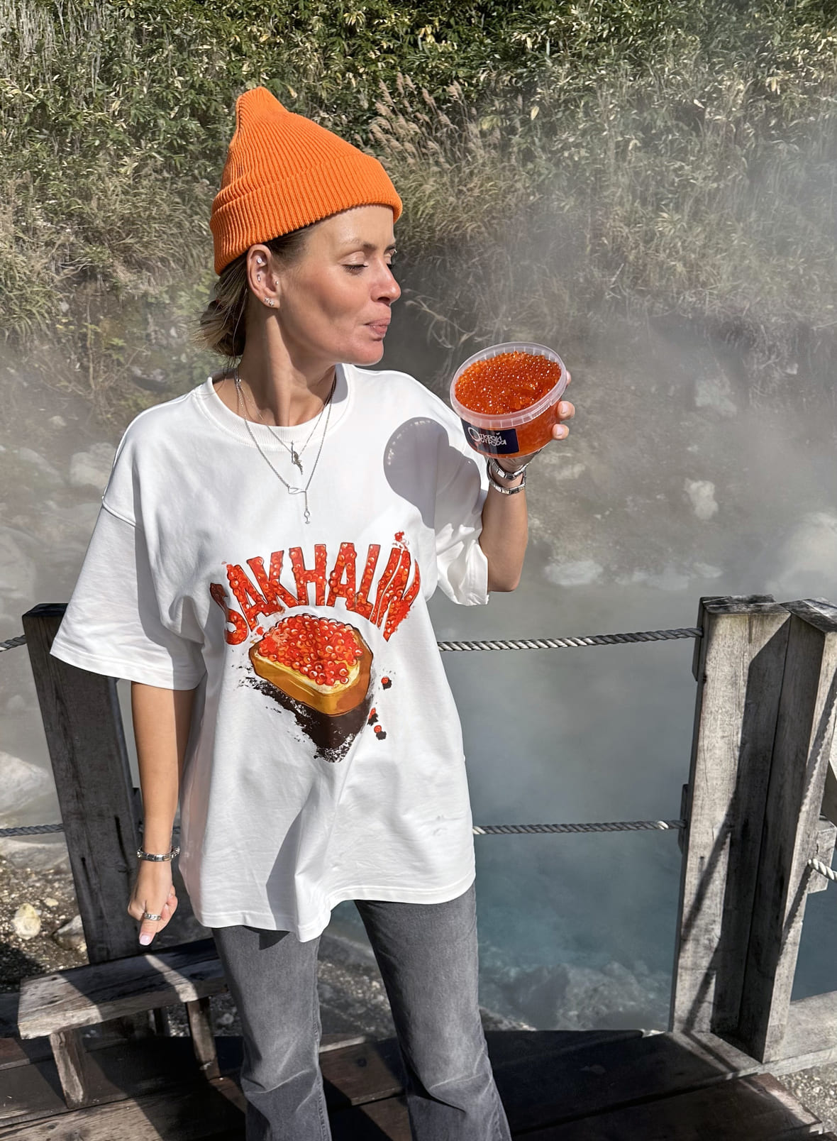 - Мерч. Футболки, толстовки, шапки с яркими тематическими принтами. Можно купить в магазине «Сахалин рядом» в центре Южно-Сахалинска или онлайн в магазине «Куда завтра».
