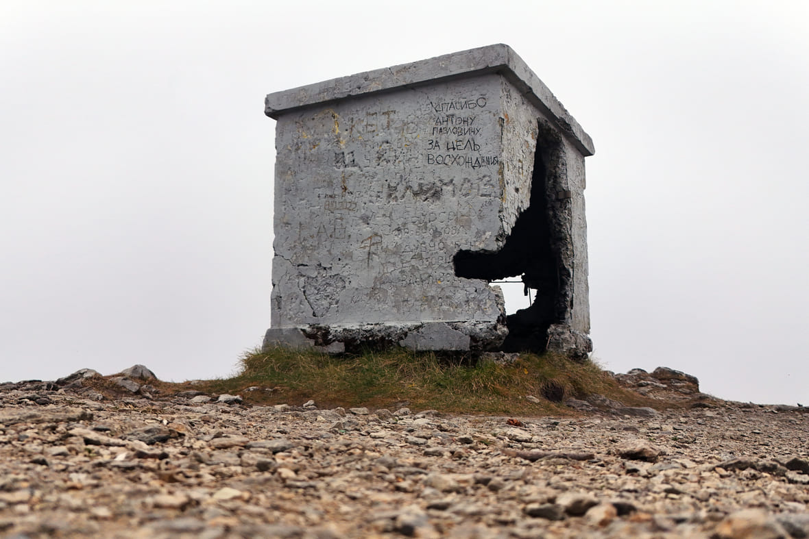 «Спасибо Антону Павловичу за цель восхождения» — надпись на руинах храмового домика, который построили японцы в честь богини солнца Аматэрасу на вершине пика. Фото: Ольга Шамшуварова