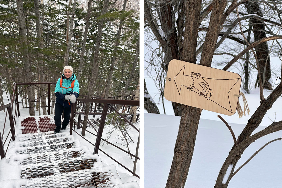 В получасе езды на автомобиле от Южно-Сахалинска есть прогулочный маршрут по рекреационной зоне Весточка, её ещё называют Лягушкой за схожесть скалы-останца с земноводным. Увидеть останец можно круглый год, поднявшись по ступеням. На всём пути подъёма есть места для отдыха, чтобы перевести дух и полюбоваться лесом.