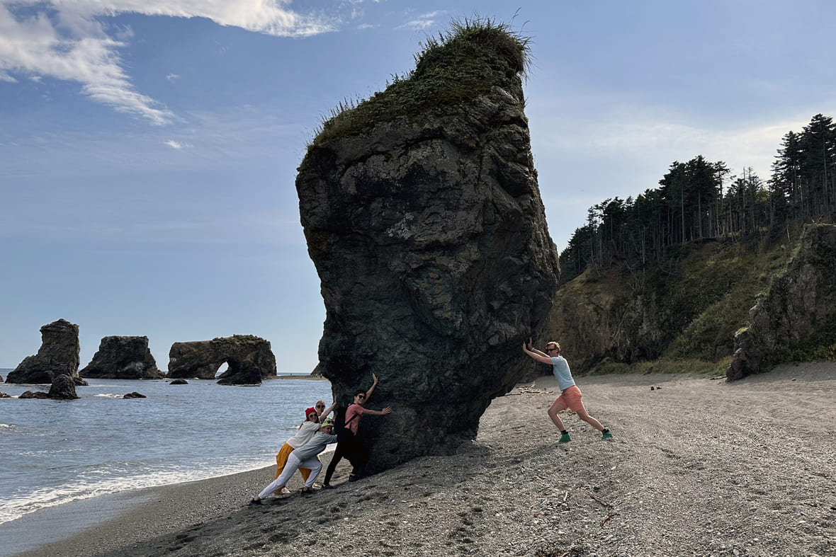 Многие заканчивают свою прогулку мысом Птичий, но я рекомендую пройти до Великана. Во время отлива — по побережью. Если попали на прилив, придётся подняться наверх. Советую забраться на мыс в любом случае, чтобы посмотреть на потрясающие кекуры и птичьи базары сверху. Тропы натоптаны, туристов много — не заблудитесь. Не забывайте, что рядом лес, в котором живут дикие звери: медведи и лисы.