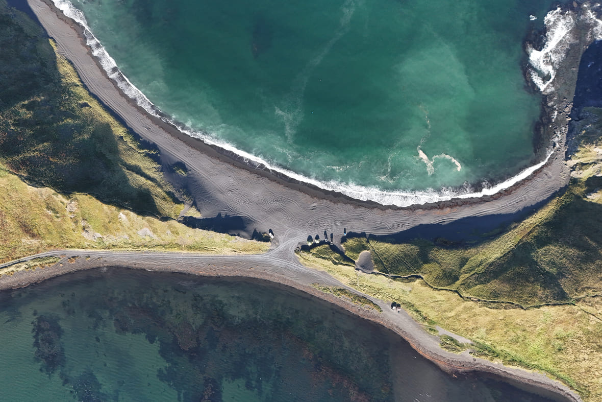 Из-за небольшого количества снега мы смогли добраться к мысу Птичьему на машине, хотя обычно для этого используются снегоходы. Летом это место — одно из самых популярных на острове. Из-за того, что там проводятся экскурсии самого разного качества, в сознании туристов давно всё смешалось. Мыс Птичий называют мысом Великан, а до настоящего мыса Великан большинство групп не добирается.