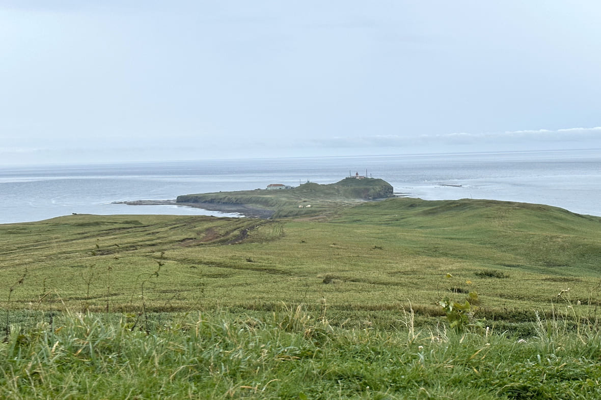 Вдалеке Мыс Крильон — самая южная точка Сахалина — и маяк. Фото: Ольга Шамшуварова