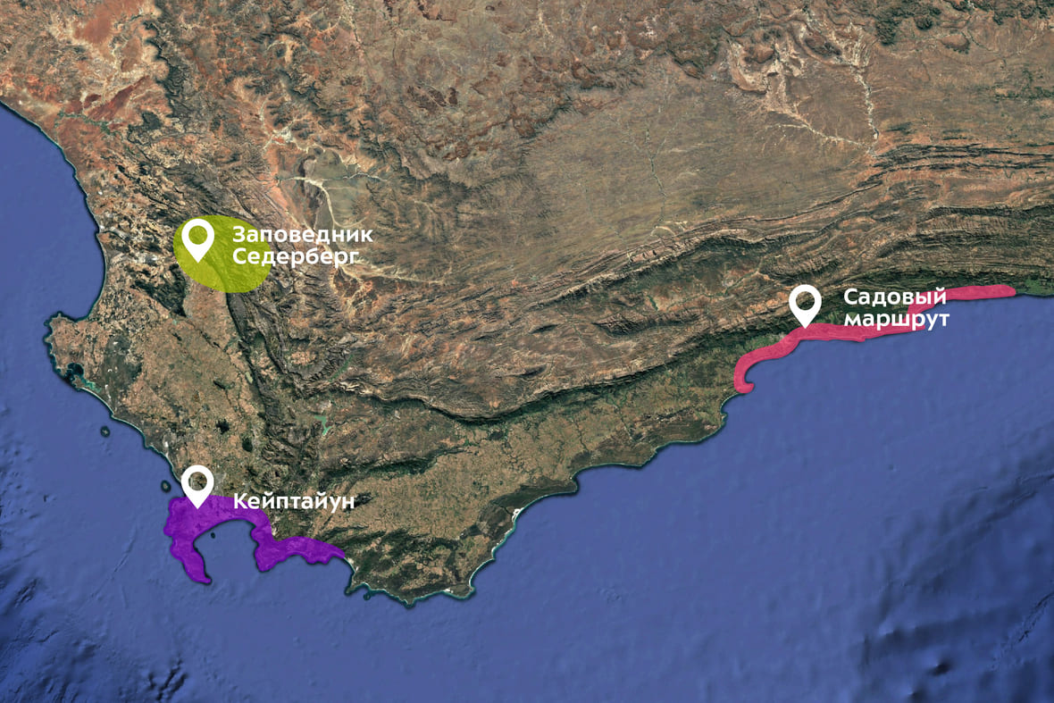 Маршрут проходит по территории небольшого заповедника — его площадь всего два квадратных километра. Охраняемая зона занимает весь полуостров Робберг недалеко от залива Плеттенберг и часть водного пространства.
