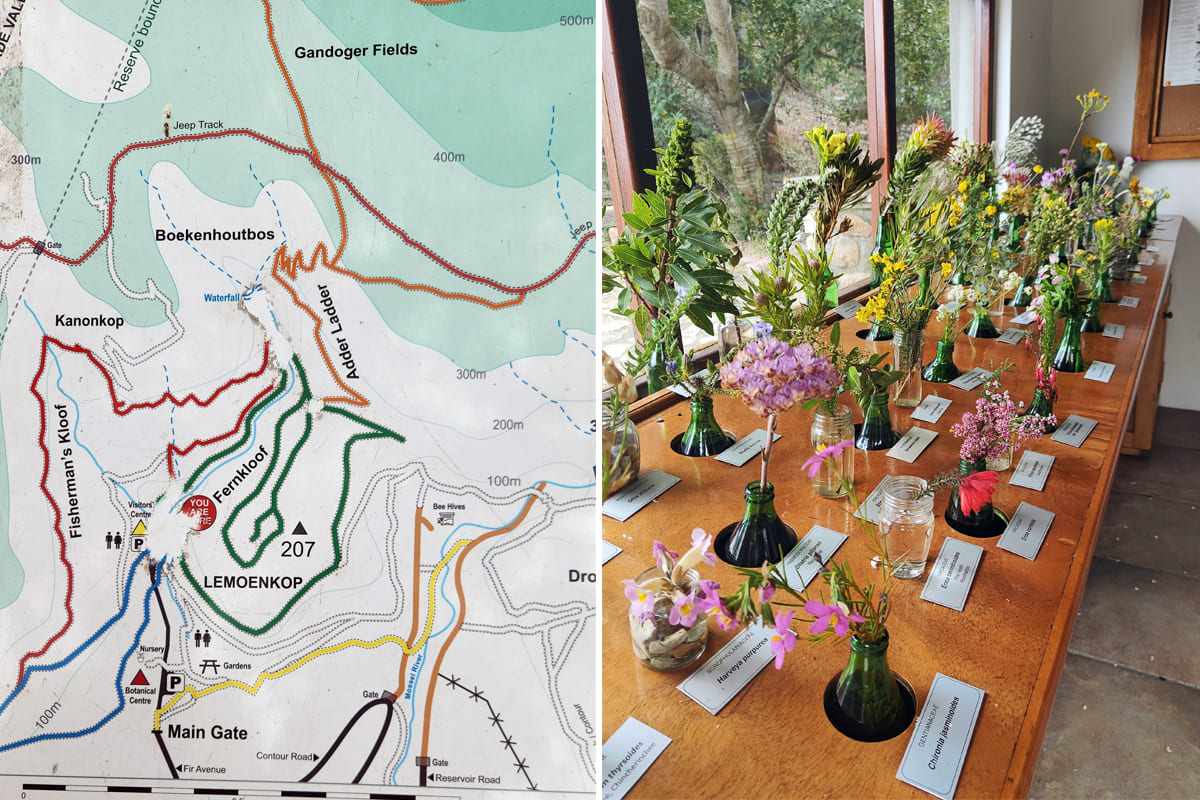 - Ботанический сад Кирстенбош (Kirstenbosch) — большой парк с разнообразным рельефом. Есть цивилизованная часть с дорожками и лавочками и дикие тропы для треккинга. Один из маршрутов — Skeleton Gorge — ведёт на Столовую гору. На прогулку по саду планируйте целый день.
