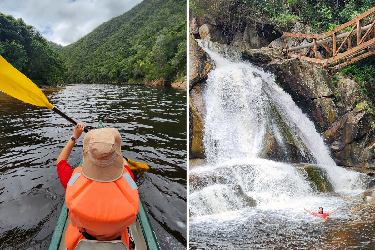 Как добраться: национальный парк Wilderness находится рядом с одноимённой деревней. Входов в парк несколько, они платные — 200 рэндов (10 долларов, или 1000 рублей) с человека. После пропускного пункта нужно заехать в офис и оплатить аренду каяков — примерно восемь долларов за один. Затем оставить машину у лодочной станции.