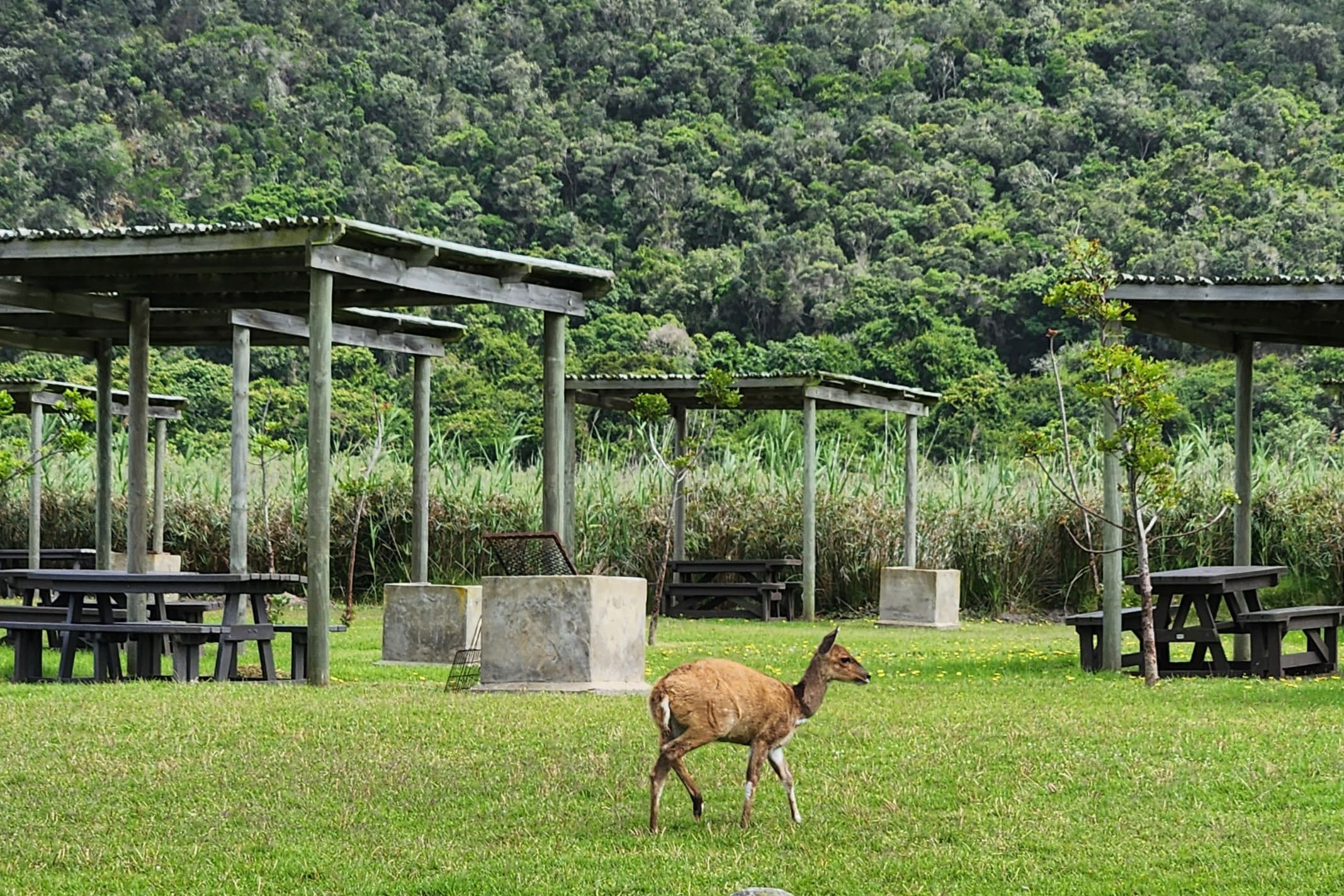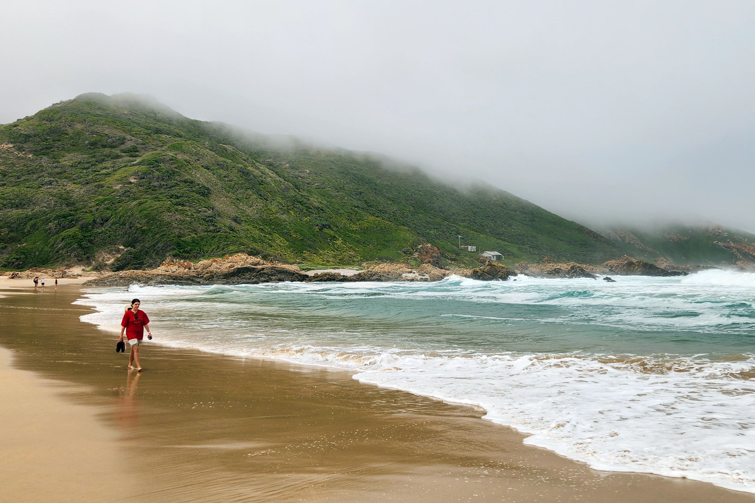 Цицикамма — гигантский нацпарк, по нему можно гулять с рюкзаком несколько дней подряд, а ещё походить на каяке по реке в красивом каньоне. Мы выбрали несколько коротких маршрутов — до водопада и подвесного моста — и остались на ночь в караван-парке рядом со стартом, на берегу океана.