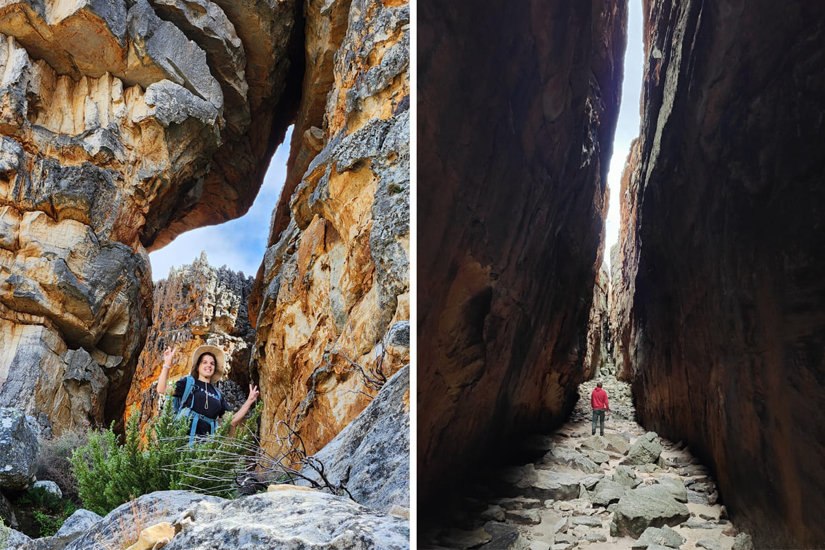На подходе к щели между скалами и сама щель между гигантскими каменными стенами. Фото: Иван Глобенко
