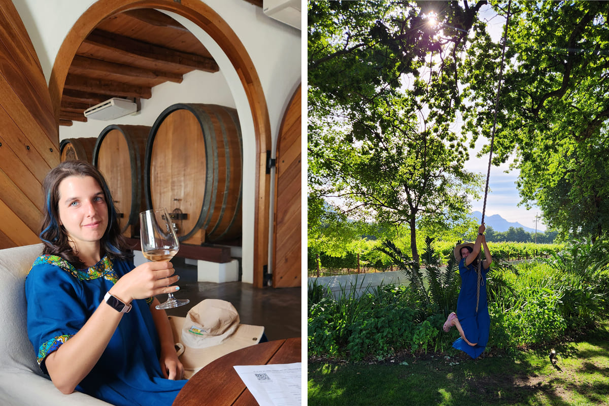 На всех винодельнях есть wine tasting — дегустация. За 90 рэндов (500 рублей) можно попробовать 4–6 бокалов разного вина на выбор, о каждом подробно рассказывает сомелье. Ещё у многих виноделен красивая территория, по которой можно свободно гулять. Учтите, что почти все винодельни закрываются до 17–18 часов.