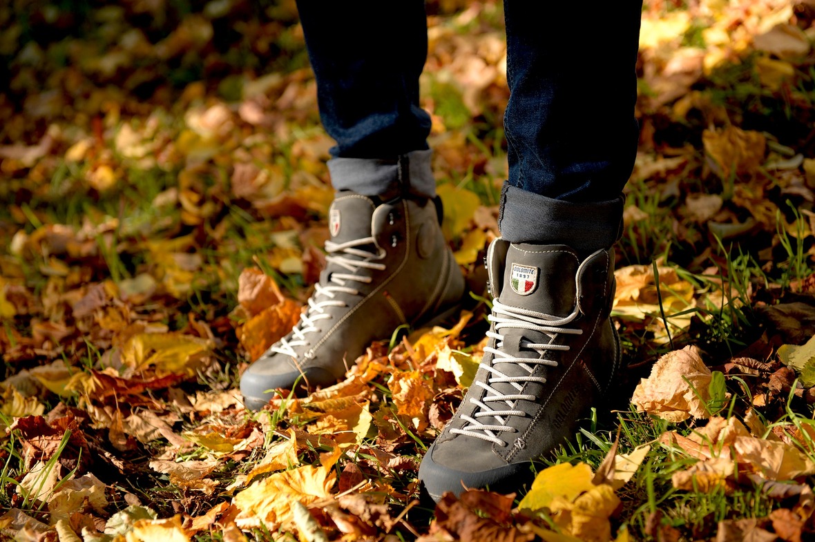 Эти полуботинки — основа серии Dolomite Cinquantaquattro/54, и с них же начиналась эта коллекция. В отличие от высоких ботинок, эти более универсальны и актуальны как летом, так и тёплой осенью. Они лучше подходят для прогулок и путешествий, потому что более лёгкие и гибкие. Также из-за низкого голенища в них удобнее управлять машиной, нежели в полноценных ботинках. Если значительную часть своего осеннего дня вы проводите за рулём, то, возможно, стоит пожертвовать высоким верхом.
