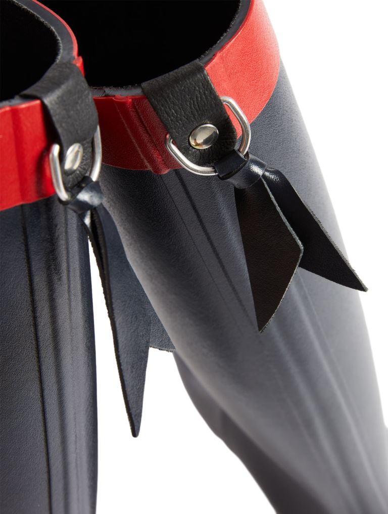 Чтобы модель подходила людям с разным объёмом голени, на сапогах есть регулировка — кожаный ремешок, который надёжно пришит к каучуковой основе.
