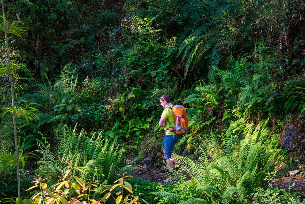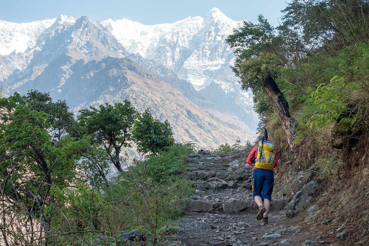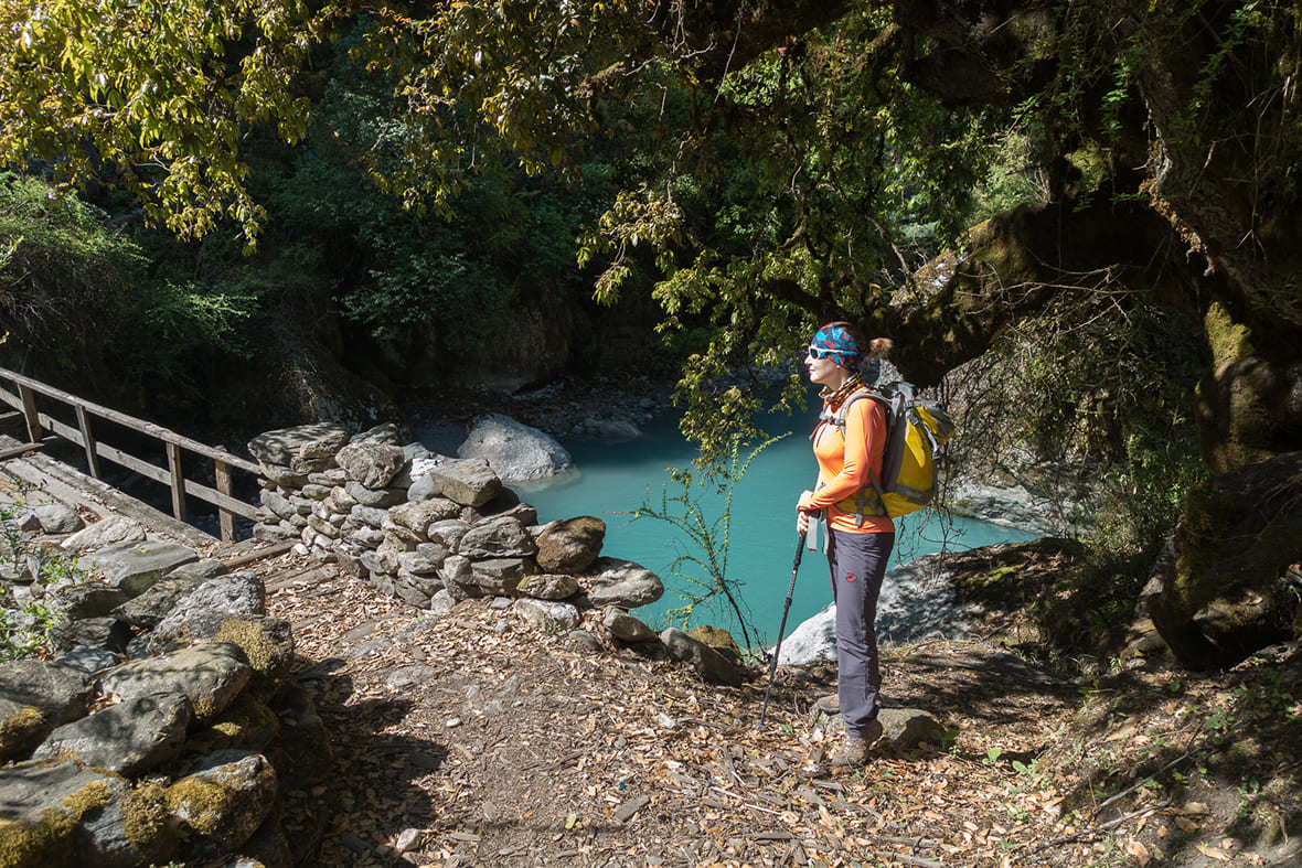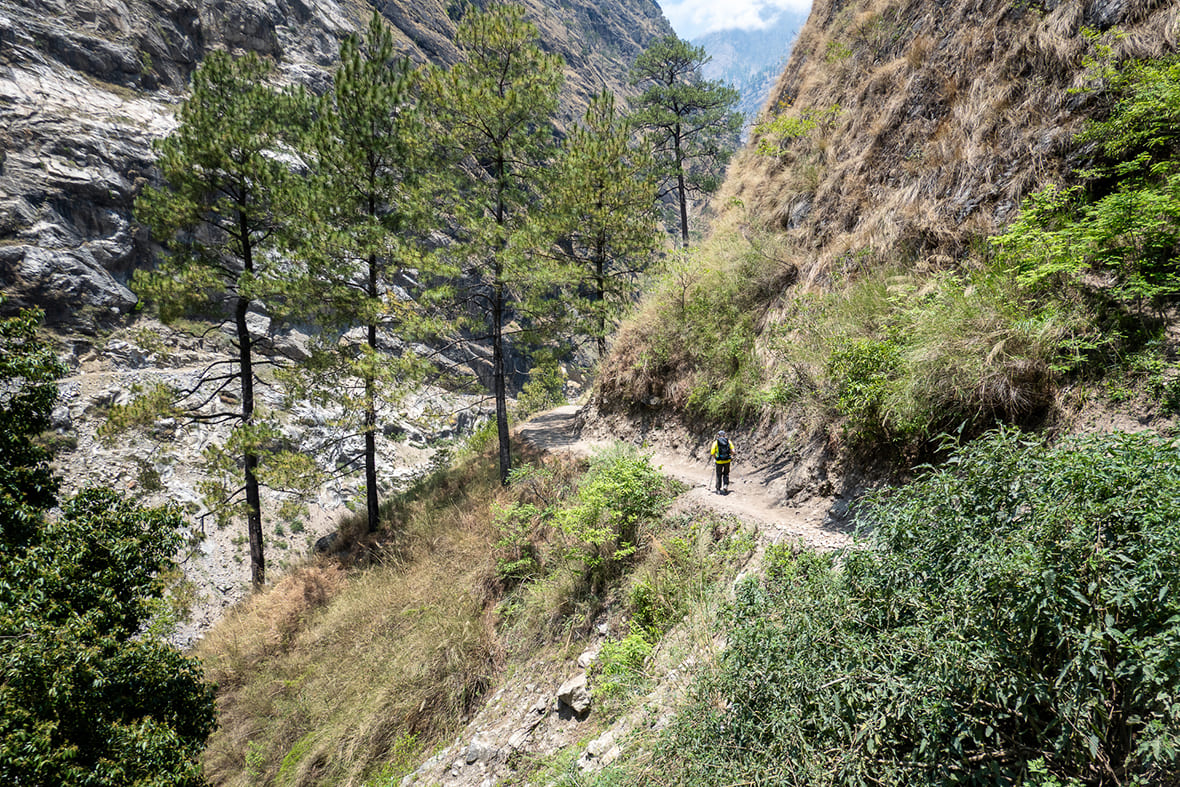 Долины Будхи-Гандаки и Сияр-Кхолы — это глубокие ущелья с почти вертикальными стенами. Суммарный набор и сброс высоты за день нередко превышает 800–1000 метров, а отдельные участки в нижней части долины узкие, сыпучие, с открытыми обрывами к реке. Ходовой день длится 5–7 часов по рельефу, который постоянно меняется: каменные ступени, подвесные мосты, лесные тропы, осыпи. Хорошая физическая форма — условие комфортного прохождения.