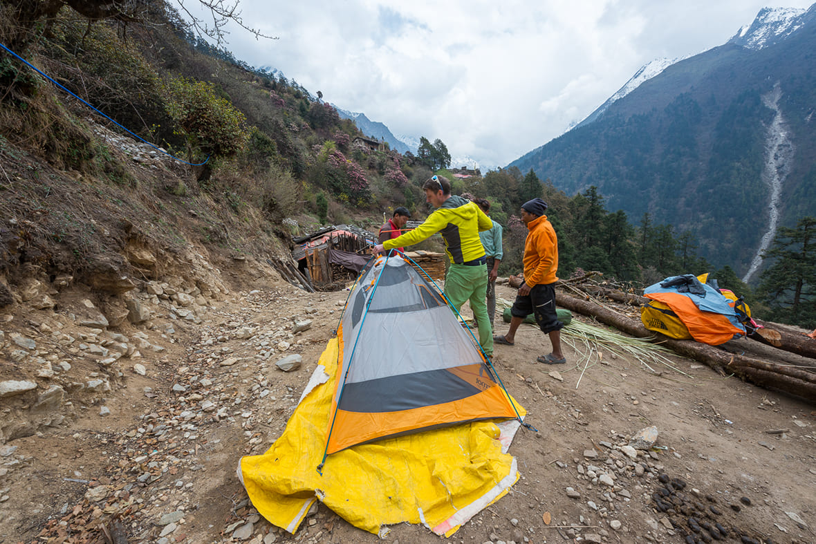 На радиальном маршруте к Гумба-Лунгданг и базовому лагерю Ганеш-Химала бутилированной воды в продаже нет. Выше — только горные ручьи. На этом участке нужны таблетки для обеззараживания или компактный фильтр.